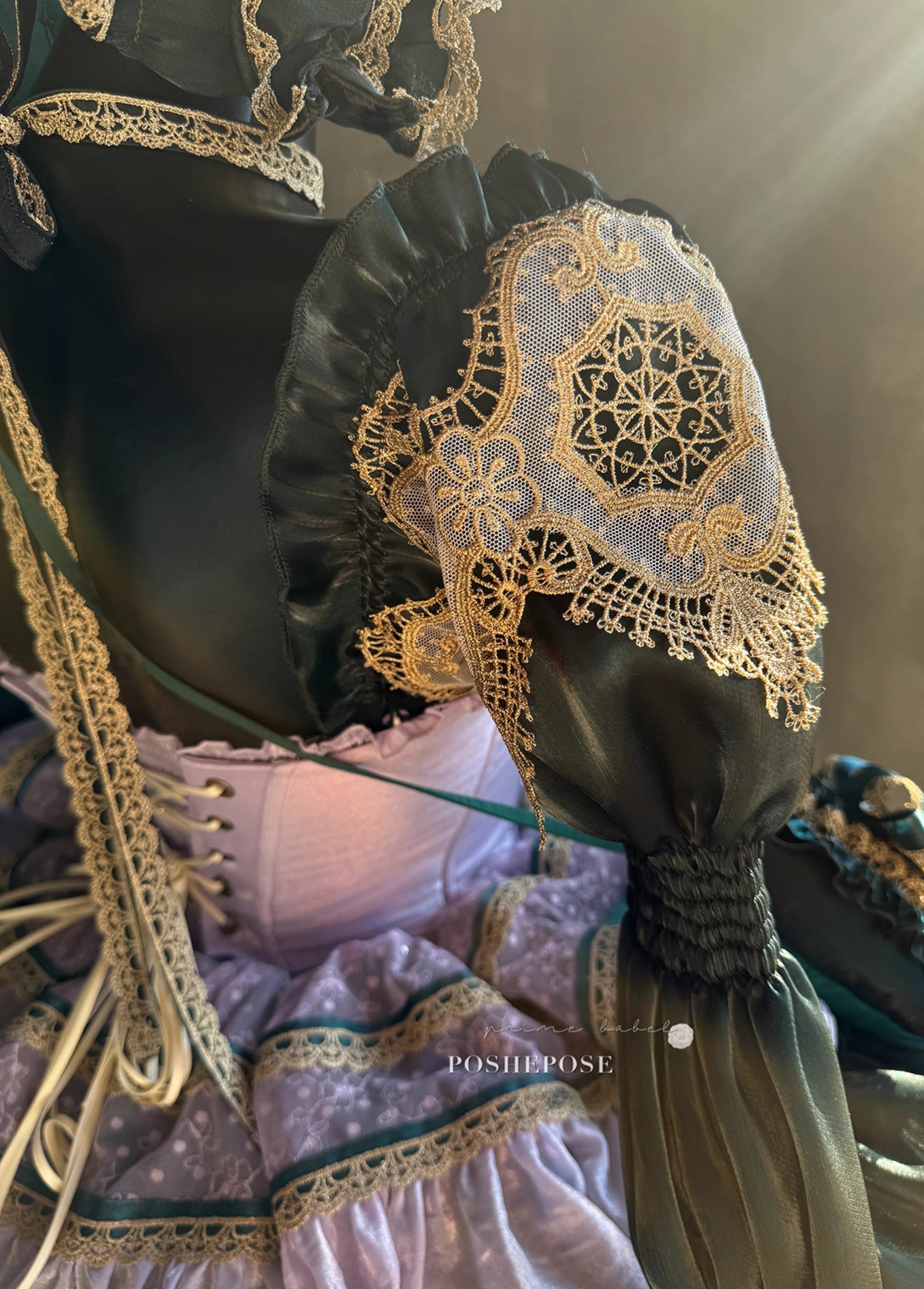 Design Inspiration: Inspired by the grandeur of Rococo palaces and the timeless beauty of aristocratic fashion, the dress combines regal lacework, ornate trims, and a gracefully layered silhouette reminiscent of noble court attire.