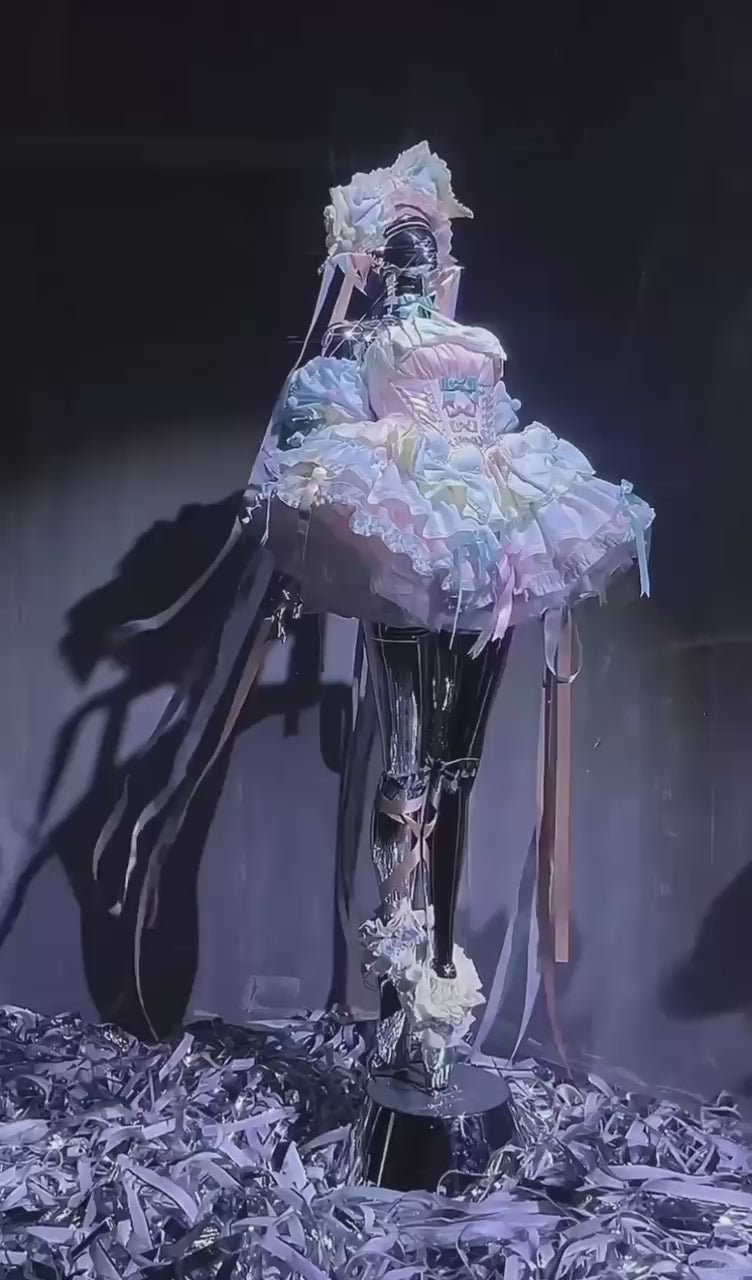 Romantic Design: Inspired by garden tea parties and the gentle rhythm of waltzes, this dress features a soft, flowing silhouette enhanced by ribbon accents and layered textures.