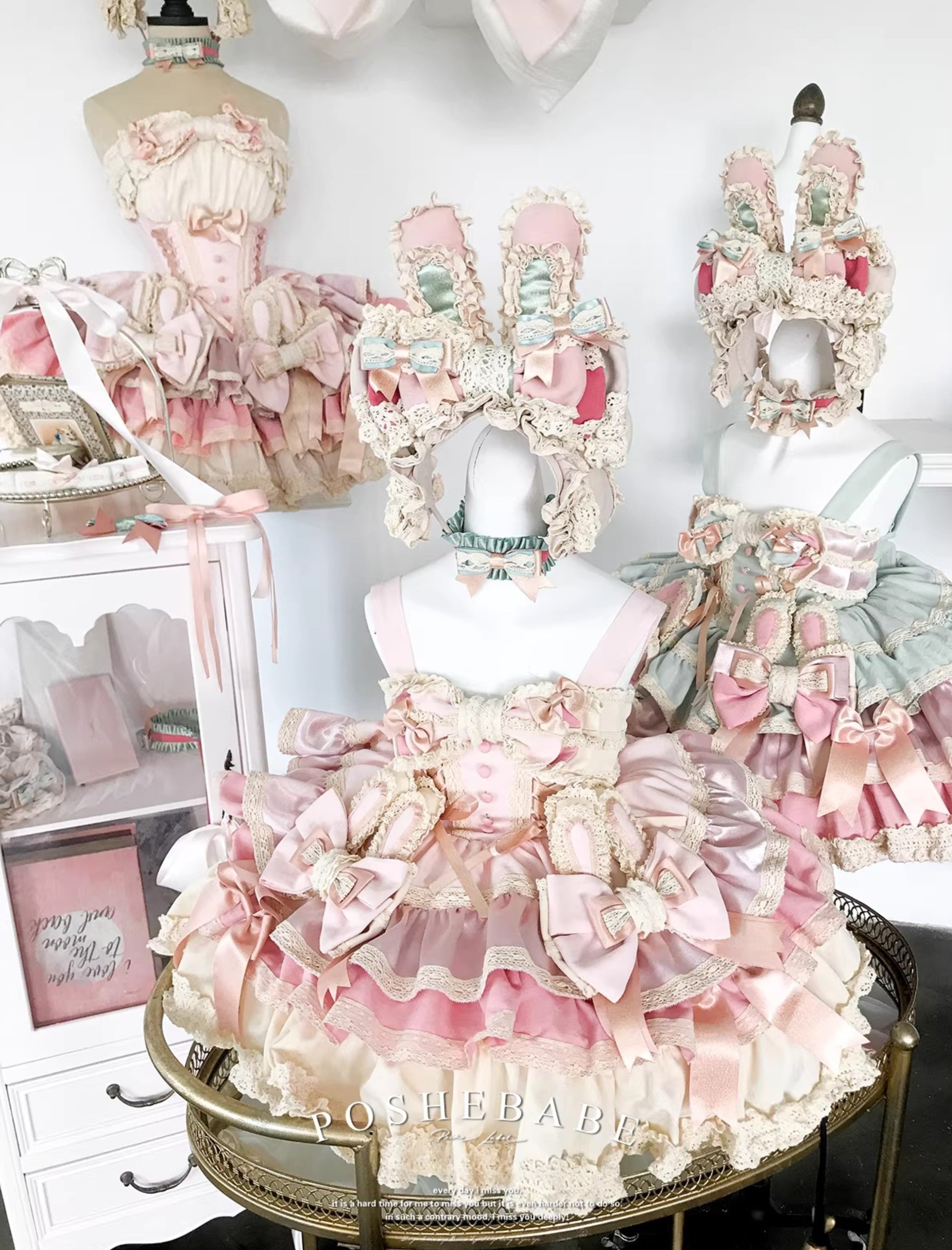 Inspired by candy-colored fairy tales, gentle woodland bunnies, and classic Sweet Lolita aesthetics, the Soufflé Milk Bunny Candy Dress embodied innocence, softness, and princess-like fantasy. The design balanced volume and delicacy, combining traditional Lolita cupcake proportions with adorable animal elements to create a whimsical yet refined look suitable for toddlers through teens.